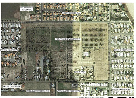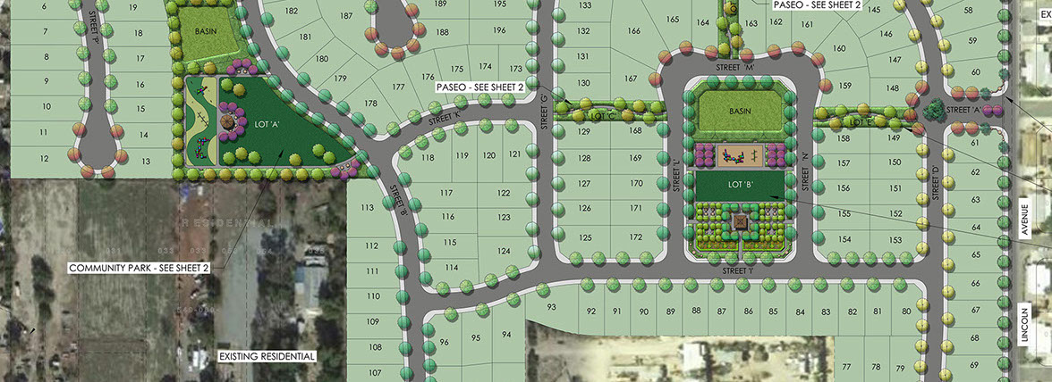 The project will be a gated community offering thoughtful designs, curved streets, two community parks, open space, and consistent landscape features . It is anticipated the project will have a secondary water system for landscape irrigation, utilizing the historic well used for the Olive trees.